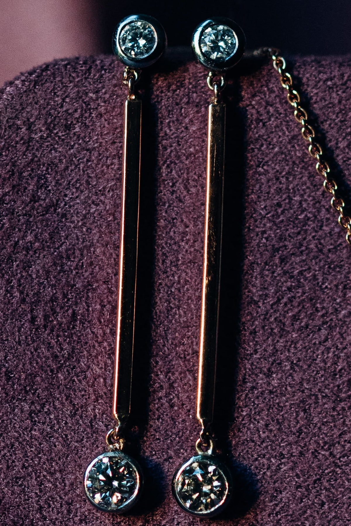 Valentina Schmuckset aus Collier und passenden Longline-Ohrhängern mit Diamanten in Roségold, stilvoll arrangiert auf einer Schmuckpräsentation.“