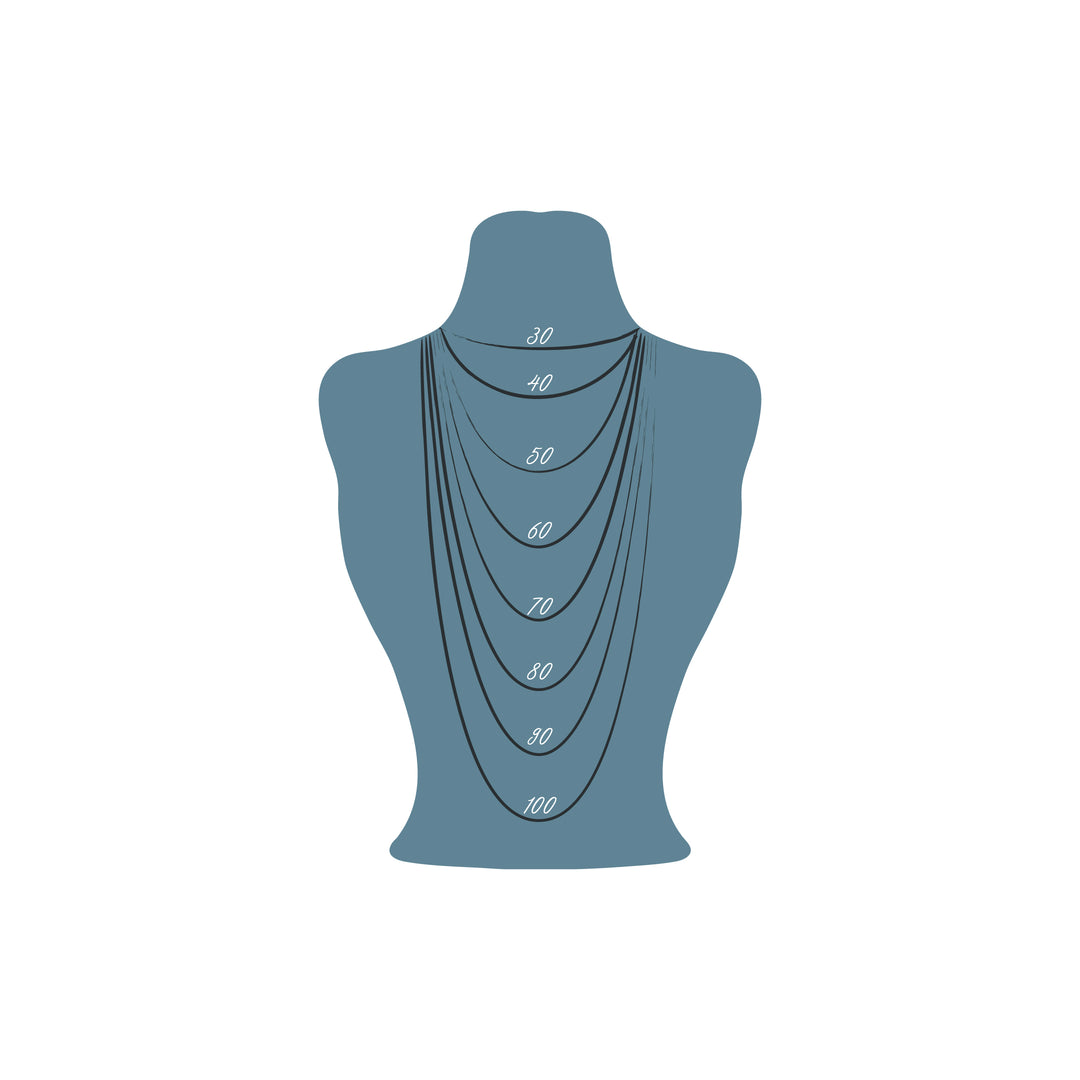Wir bietenunterschiedlicheLängen bei unseren Ketten an. Das Beispiel orientiert sich an einem Halsumfang von 35 cm. Wenn dein Halsumfang größer ist, bestelle einfach die nächste Größe.